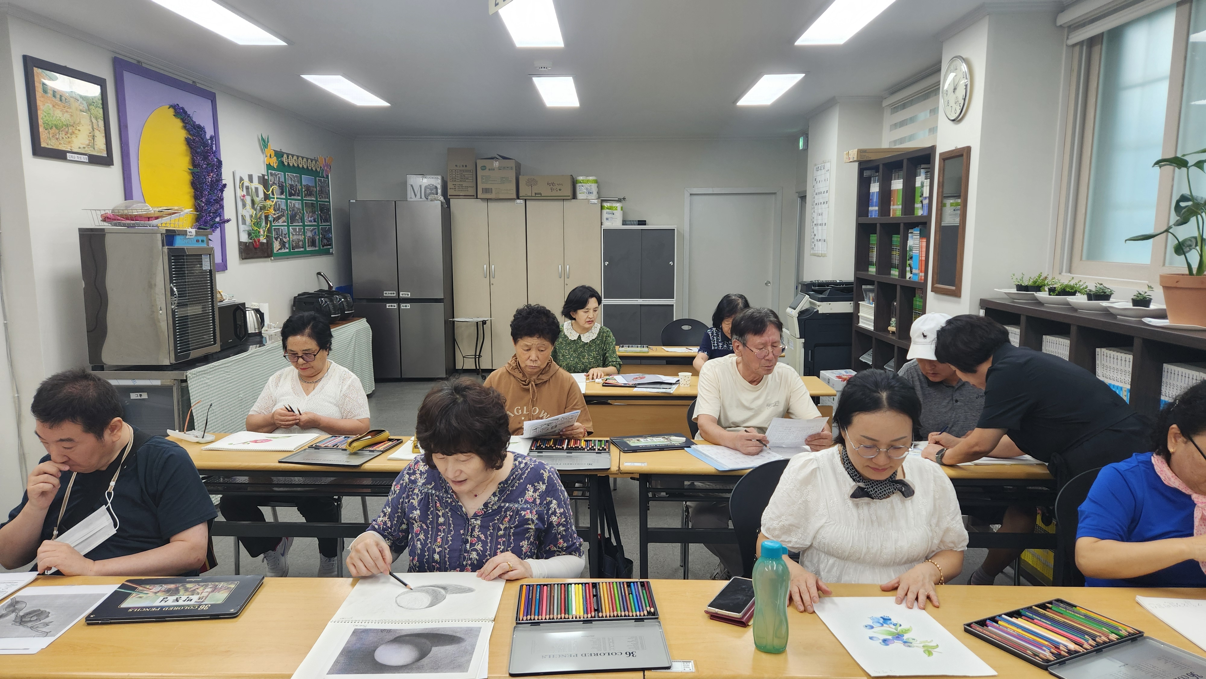 오늘 2반과 함께 한 프로그램은 미술수업으로 동백꽃 그리기를 마무리해봅니다. 방학전에 그렸던 동백꽃 방학동안 이쁘게 완성시켜 오는것이 숙제였는데 모두들 방학동안 열심히 그렸나봅니다. 각각의 개성에 따라 다양한 동백꽃이 활짝 피었네요. 오늘은 동백꽃 그리기의 마무리작업을 해봅니다. 명암이 들어가야할 부분에 대해 어떻게 명암을 넣는지 구체적으로 배워보고 윤곽선을 진하게 표현함으로써 좀더 선명한 동백꽃이 완성될수 있도록 해보았습니다. 마음이 편안해지는 미술수업시간이었습니다.