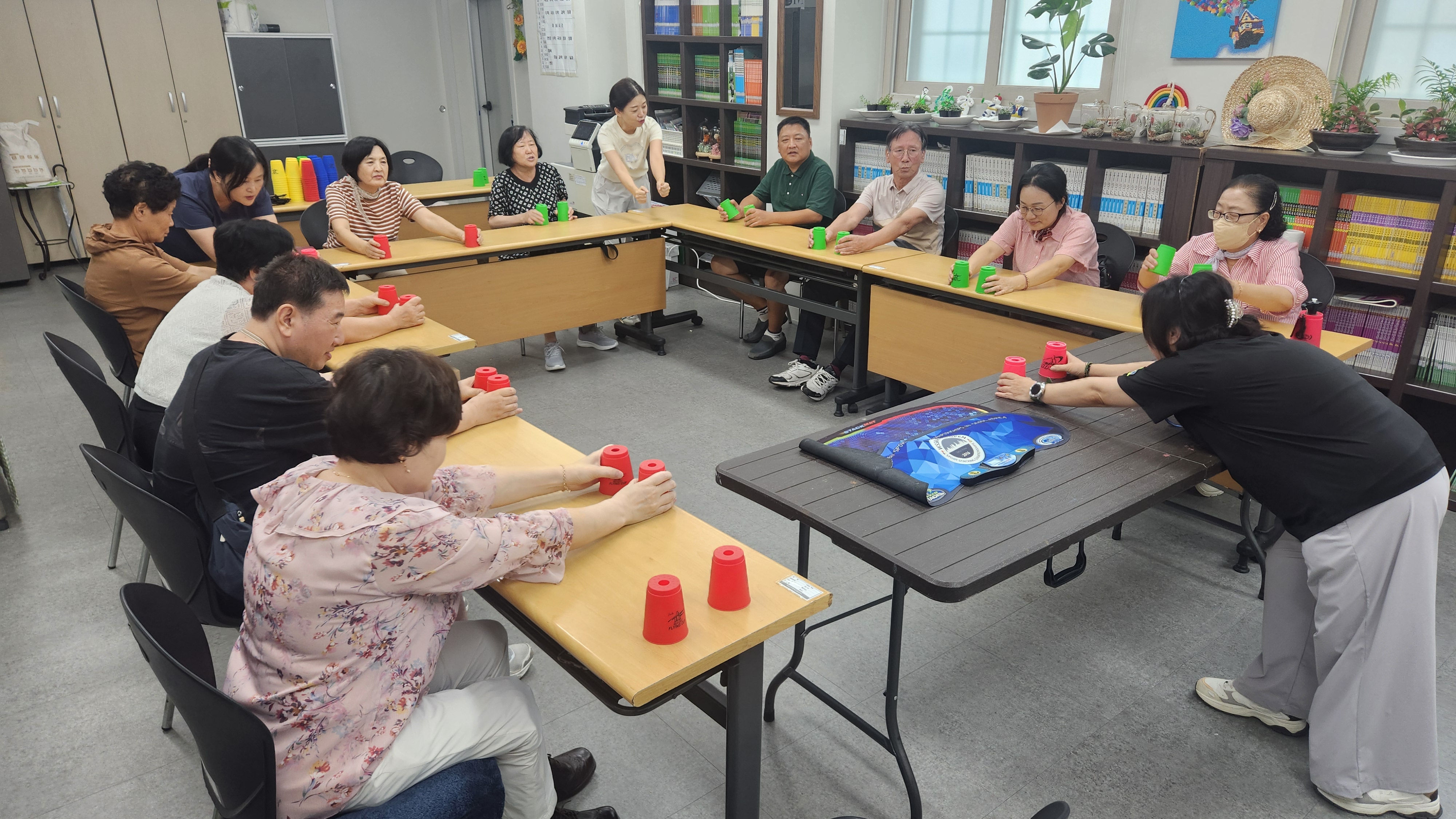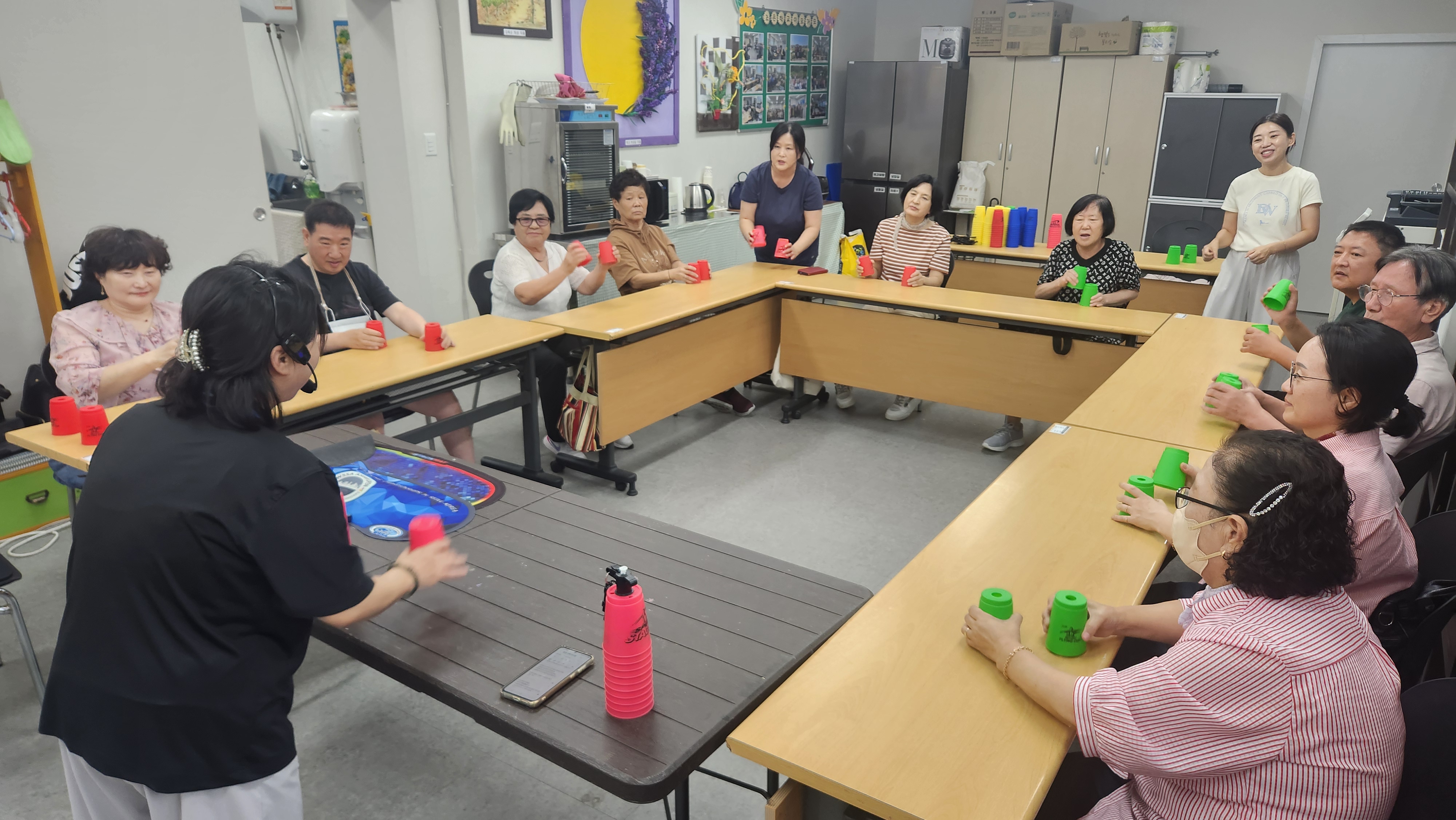오늘 2반과 함께 한 프로그램은 컵타/스포츠스태킹으로 손스팟으로 머리, 어깨, 크로스하여 주먹,가위,보를 번갈아내보며 집중력을 가지고 해보았으며 손관절염에 좋은 여러가지 스트레칭을 따라해봅니다. 나이가 들수록 손 관절이 아픈경우가 많은데 자주 풀어줌으로써 스트레칭을 해준다면 평소에 아픈 관절에 도움이 될 듯합니다. 그리고 3.6.3 스포츠스태킹을 복습해봅니다. 이제 우리학생들에게 3.3.3 스태킹은 너무나도 익숙해진 상황인데 이어 3.6.3도 자연스럽게 스태킹을 하기위해 모두들 연습에 열중하는 모습들입니다. 마무리체조로 노란샤스입은 사나이~ 노래를 들으며 다양한 체조를 반복해보았습니다. 오늘도 즐거운 컵타 시간을 보내고 마무리해봅니다. 수고하셨습니다.