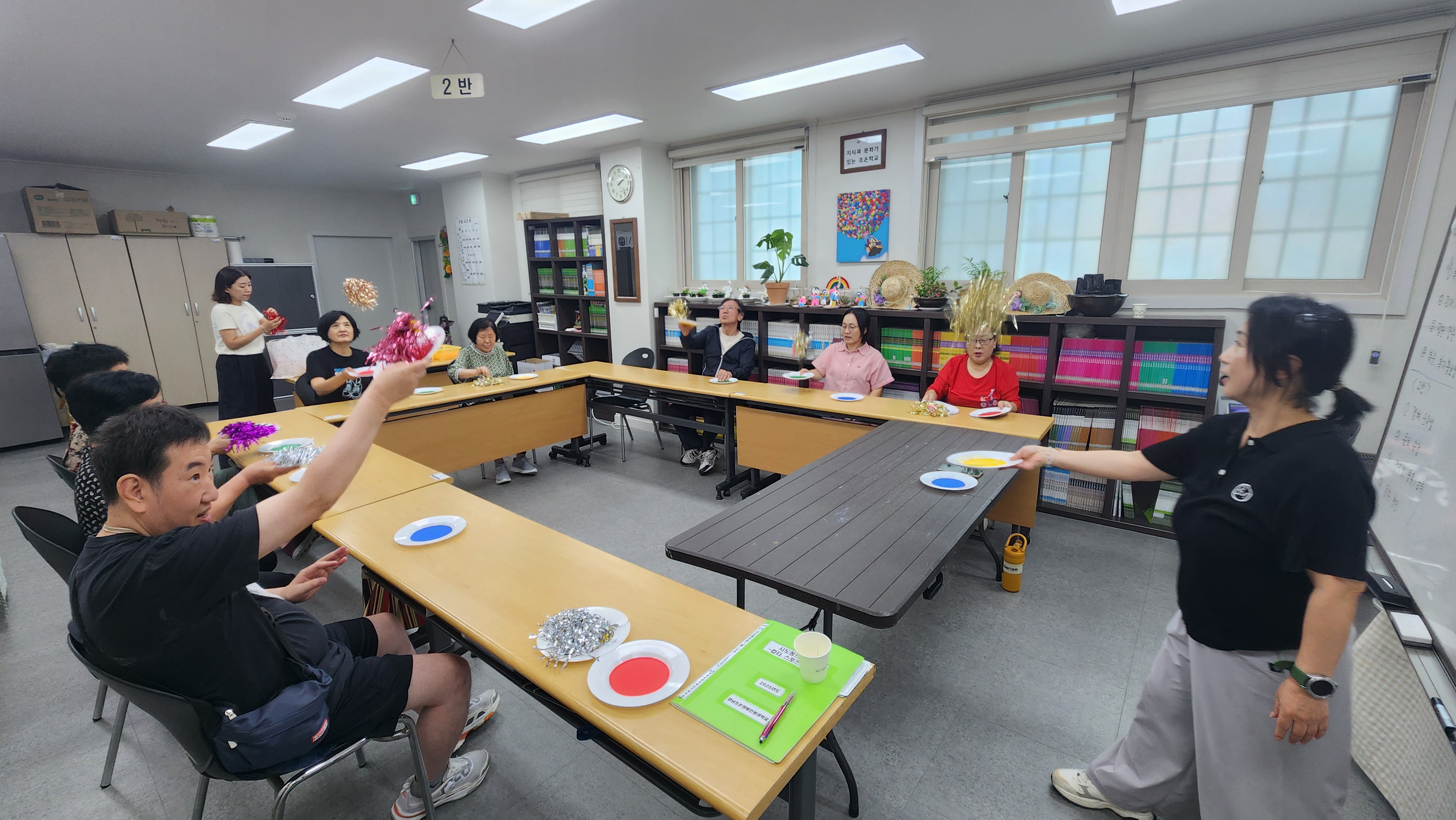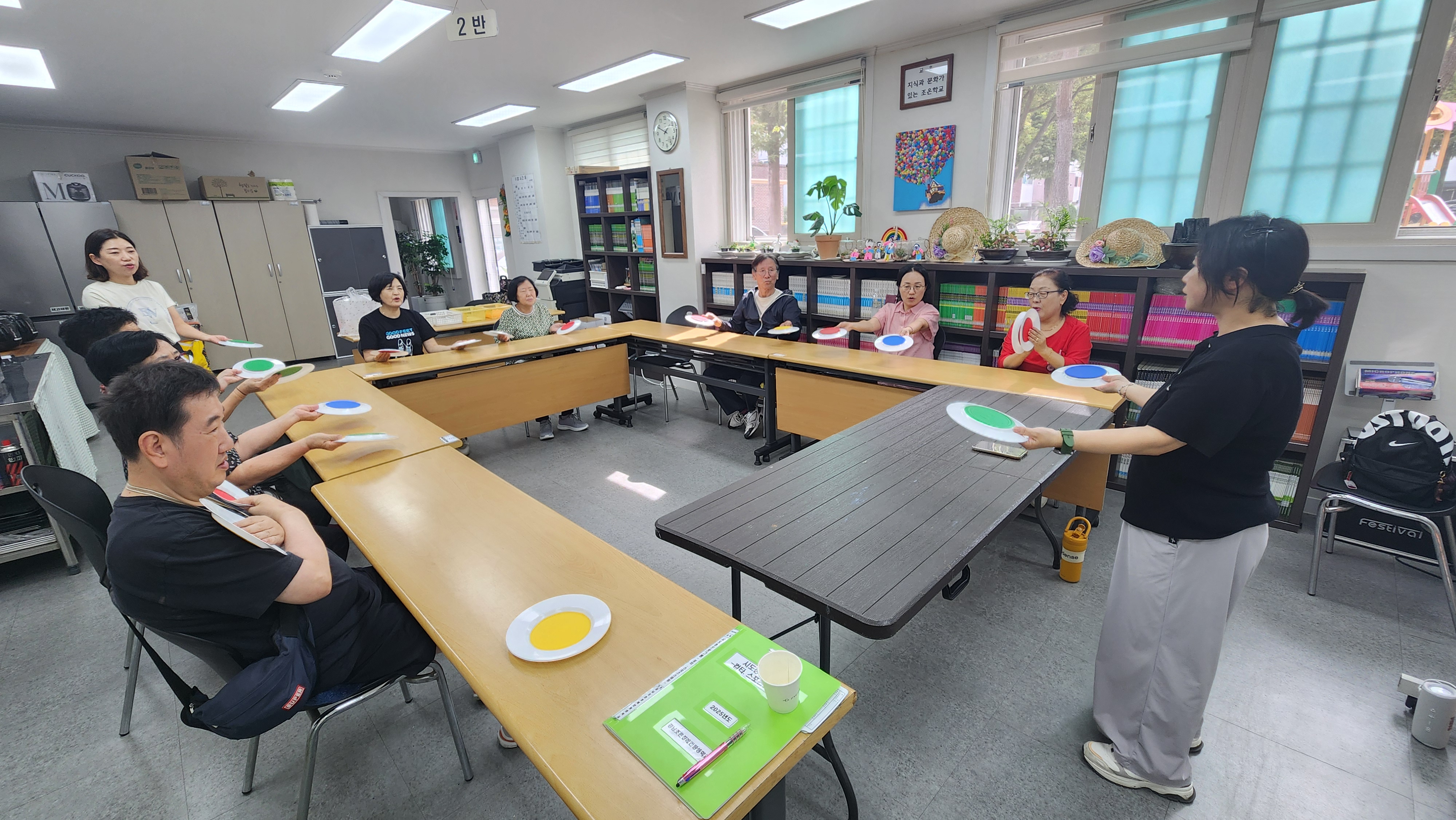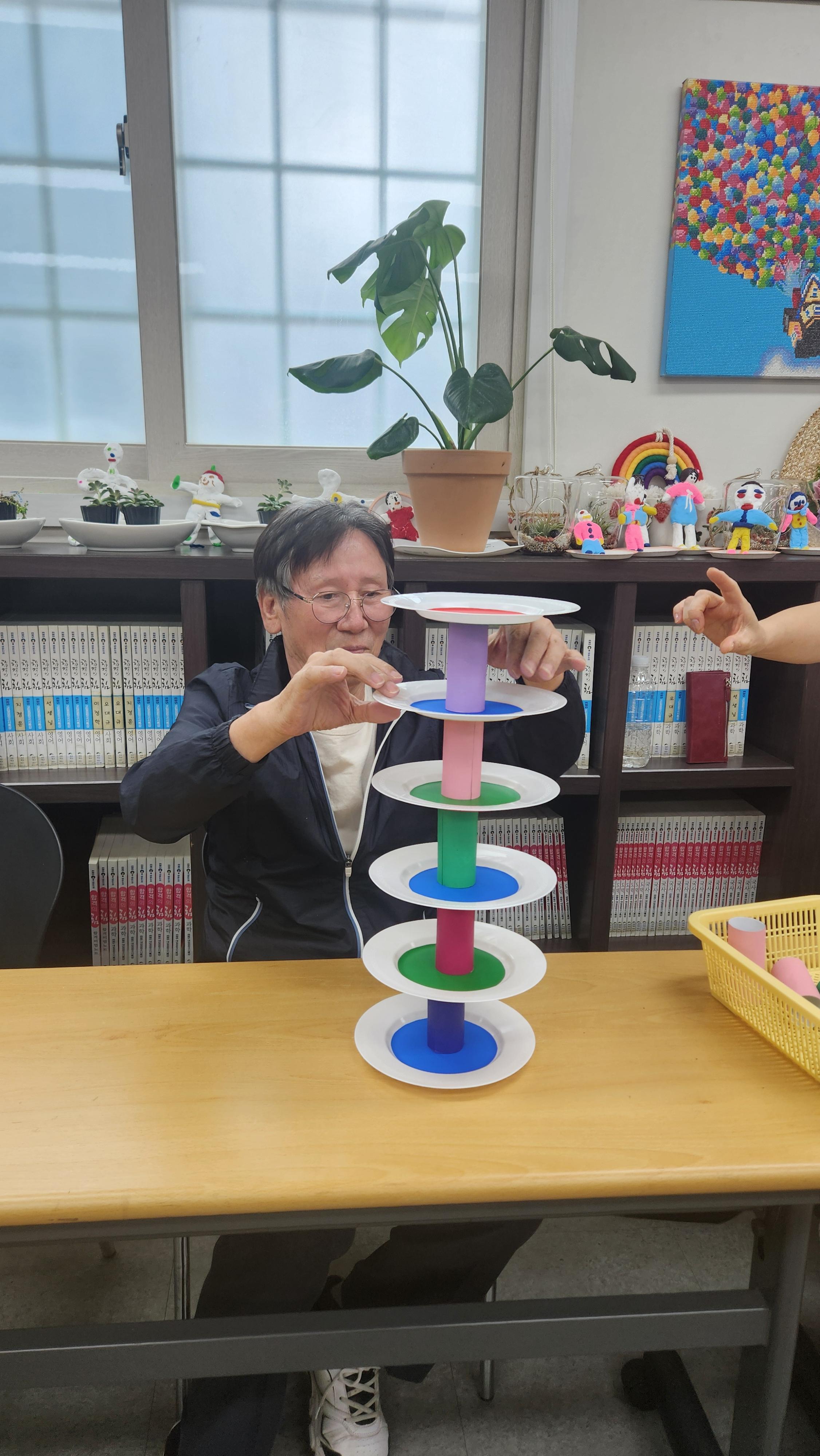 오늘 2반과 함께한 프로그램은 컵타/스포츠스태킹으로 접시를 이용한 놀이를 해보았습니다. 먼저 접시를 들고 주먹,가위,보 외치며 접시를 바꿔들며 놀이를 해봅니다. 이어 접시를 이용한 체조로 아야야, 십오야 노래에 맞춰 체조를 열심히 해보았습니다. 또한 접시를 이용한 게임으로 달옮기기라 하여 둥근 보름달을 닮은 공을 접시를 이용해 옮겨보고 접시를 이용해 제기차기를 해보았으며 팀을 만들어 접시와 휴지심으로 탑을 쌓아보는 놀이도 해보았습니다. 마무리체조로 달타령 노래에 맞춰 힘차게 놀이해봅니다. 플라스틱 접시를 이용해서 이렇게 다양한 놀이를 할수 있고 즐길수 있음에 오늘하루도 행복한 시간을 보내봅니다. 모두들 추석 잘보내고 건강한 모습으로 다시 만나기로 합니다. 수고하셨어요^^
