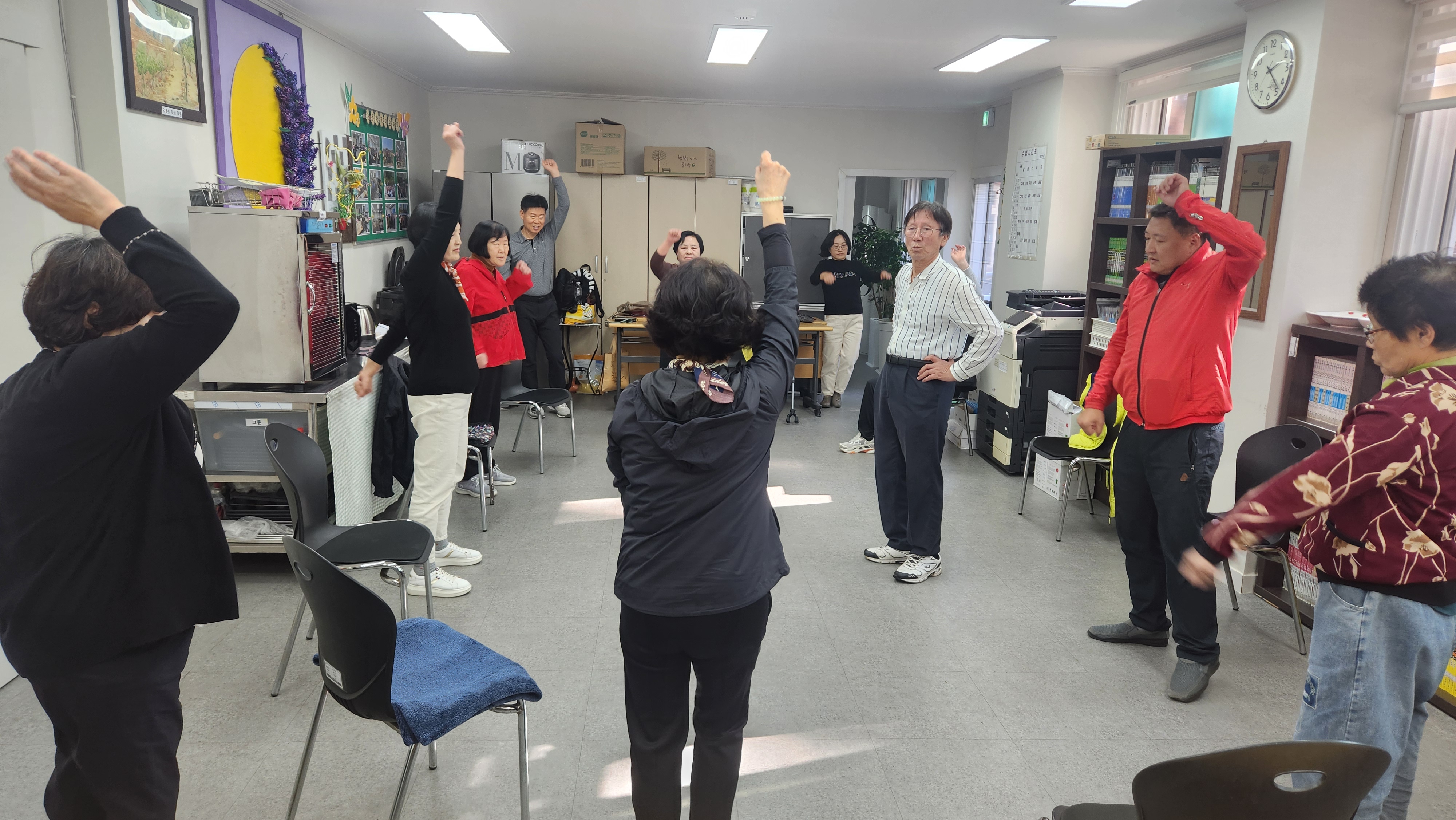 오늘 2반과 함께 한 프로그램은 밸런스워킹으로 응용걷기와 타바타 근력운동을 해보았습니다. 걷기 운동을 응용하여 다양하게 걸으면서 운동해보았으며 타바타 근력운동 두번째 버전의 새로운 동작들을 하나씩 배워보고 익혀보는 시간을 가져보았습니다. 첫번째 타바타 근력운동은 간단한 동작이어서 잘 따라했는데 두번째 타바타 근력운동은 학생들이 많이 힘들어하시네요. 그래도 잘 따라와주십니다. 역시 조은학교 2반 학생들이 체력이 좋은편인것같습니다. 오늘도 열심히 운동하고 마무리해봅니다. 수고하셨습니다.