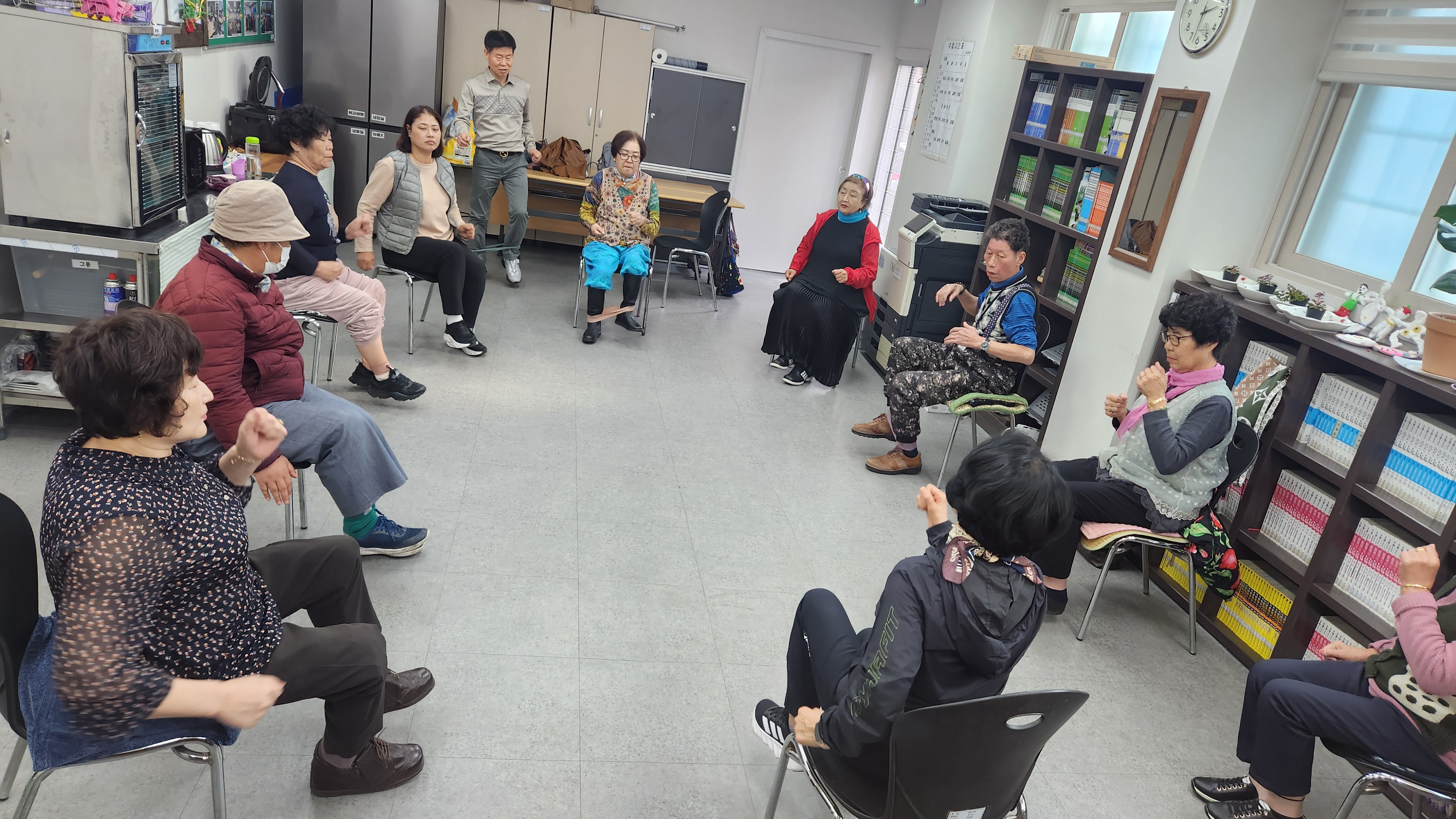 오늘 1반과 함께 한 프로그램은 밸런스워킹으로 기본적인 밸런스를 위한 여러가지 동작을 해봅니다. 가장 기초가 되는 제자리 걷기와 앞으로 뒤로 옆으로 왔다갔다 하며 걷는 운동, 복부 근육을 키우기 위한 터치동작 등 다양한 밸런스운동을 해봅니다. 그런다음 루프밴드를 활용하여 다리 근육을 키우고 특히 허벅지에 힘이 많이 들어가기때문에 허벅지 강화를 위한 운동을 여러차례 반복해봅니다. 온몸을 터치하며 한 동작 당 30번 터치하면서 운동을 하였더니 학생들의 얼굴에 땀방울이 송골송골 맺혀있네요. 오늘도 열심히 운동하고 돌아갑니다. 오늘 모두 고생하셨습니다 ♡