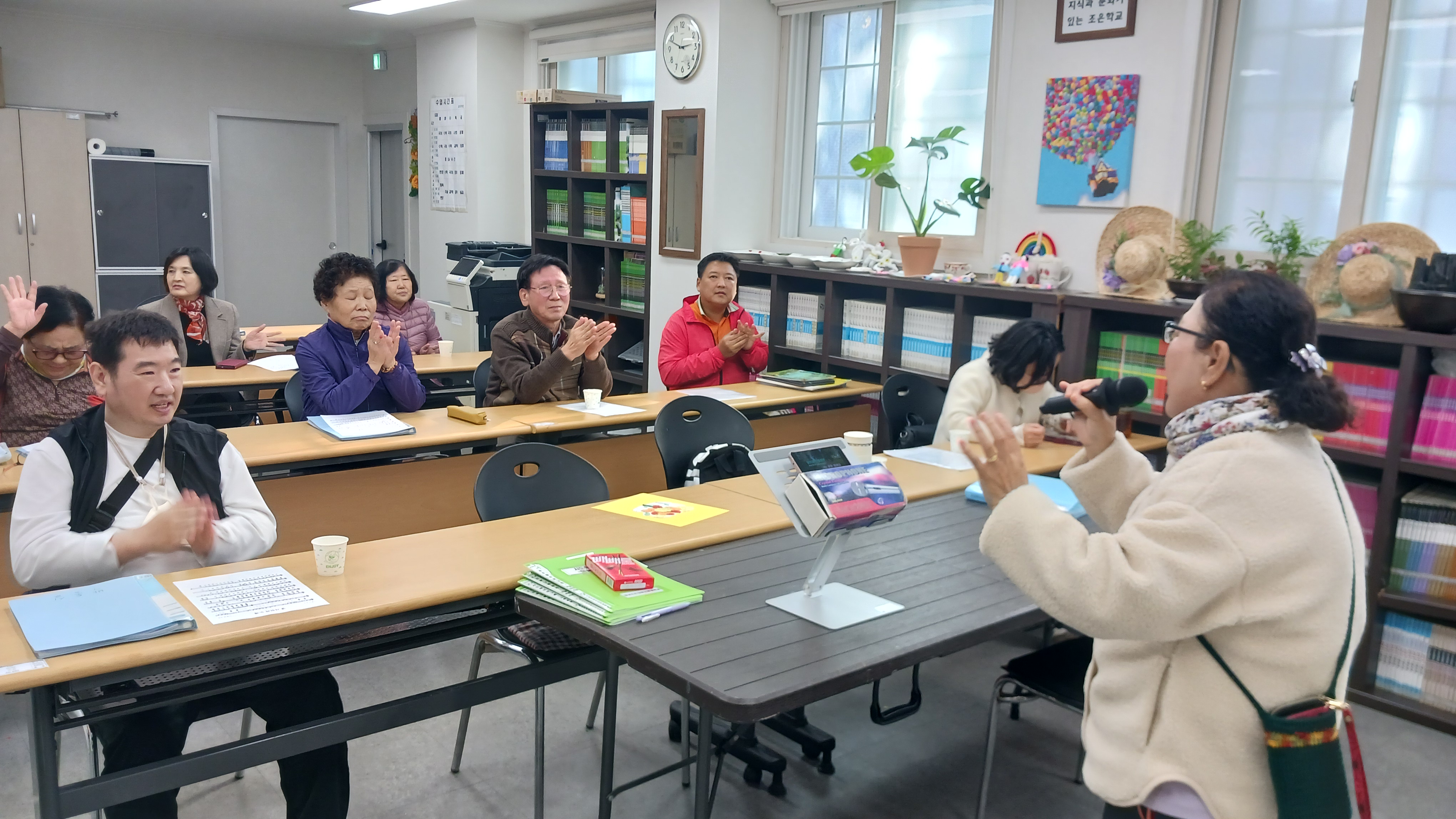 오늘 2반과 함께 한 프로그램은 노래교실로 각자 좋아하는 노래를 불러보고 한경애의 옛 시인의 노래를 들어보고 따라 불러보며 배워봅니다. 학생들 모두 젊은 시절 다방에서 많이 들은 노래라며 모두들 알고 계실만큼 유명한 가을노래라고 합니다. 계절에 맞는 노래를 부르니 가을감성에 젖어드는 것 같습니다. 오늘도 즐겁게 노래부르며 즐겨봅니다. 모두들 수고하셨습니다.