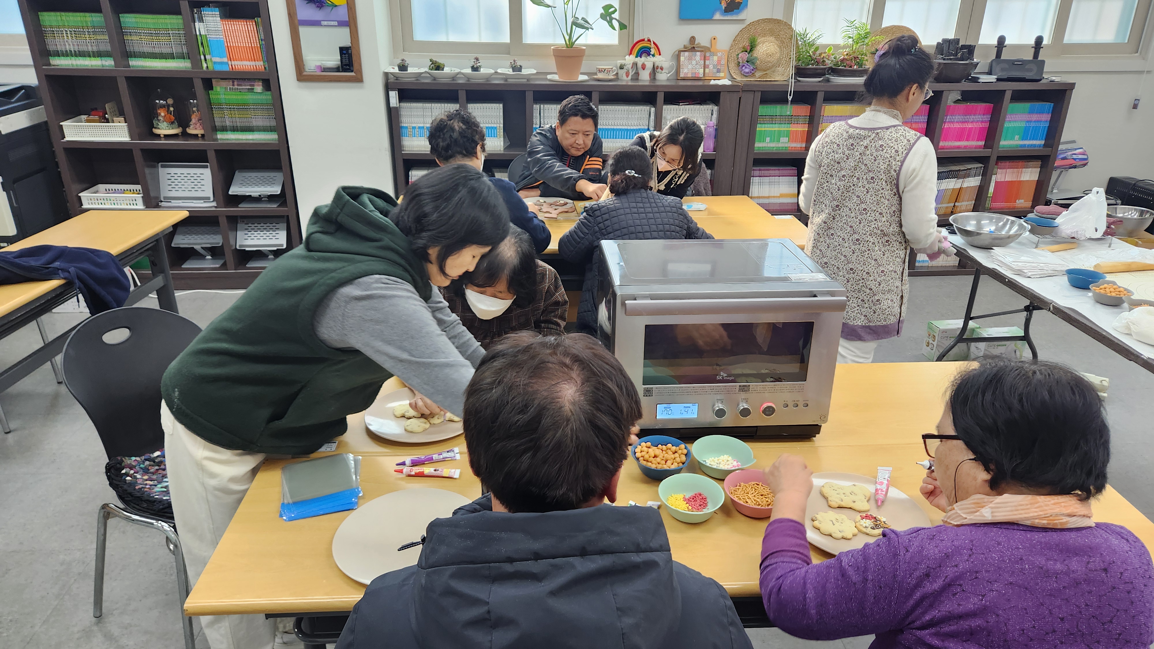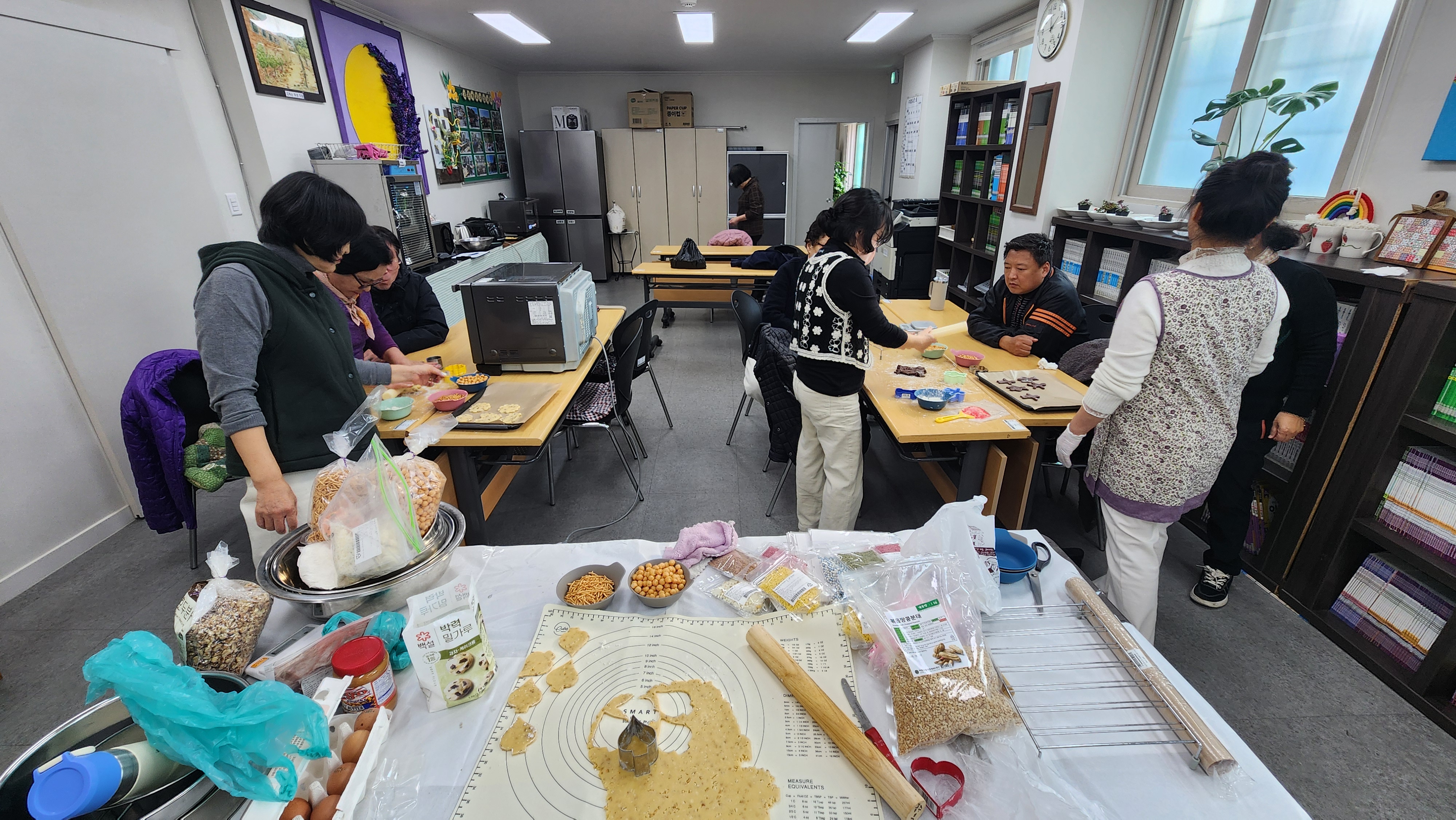 오늘 2반과 함께 한 프로그램은 제과제빵으로 밀가루와 소금, 설탕, 계란으로 반죽을 하고 그 안에 땅콩, 호두, 초코를 넣어 잘 섞어준 뒤 숙성해주었습니다. 그런다음 밀대로 얇게 펴서 모양틀로 찍어내었더니 맛있는 쿠키가 완성되었습니다. 모두들 재밌게 만들어준 덕에 더 좋은 맛이 나는것 같네요. 즐거운 제과제빵 시간이었습니다.