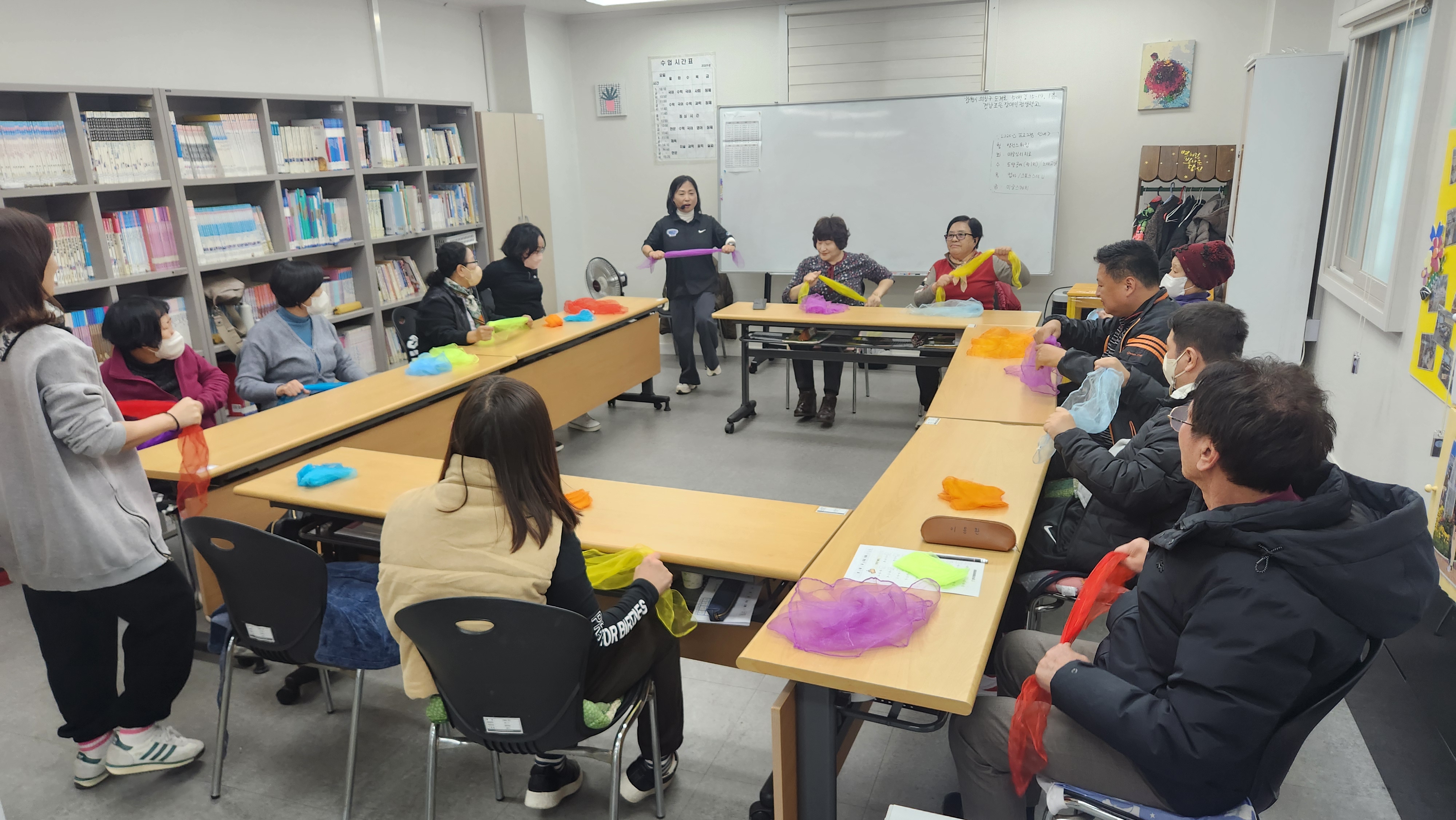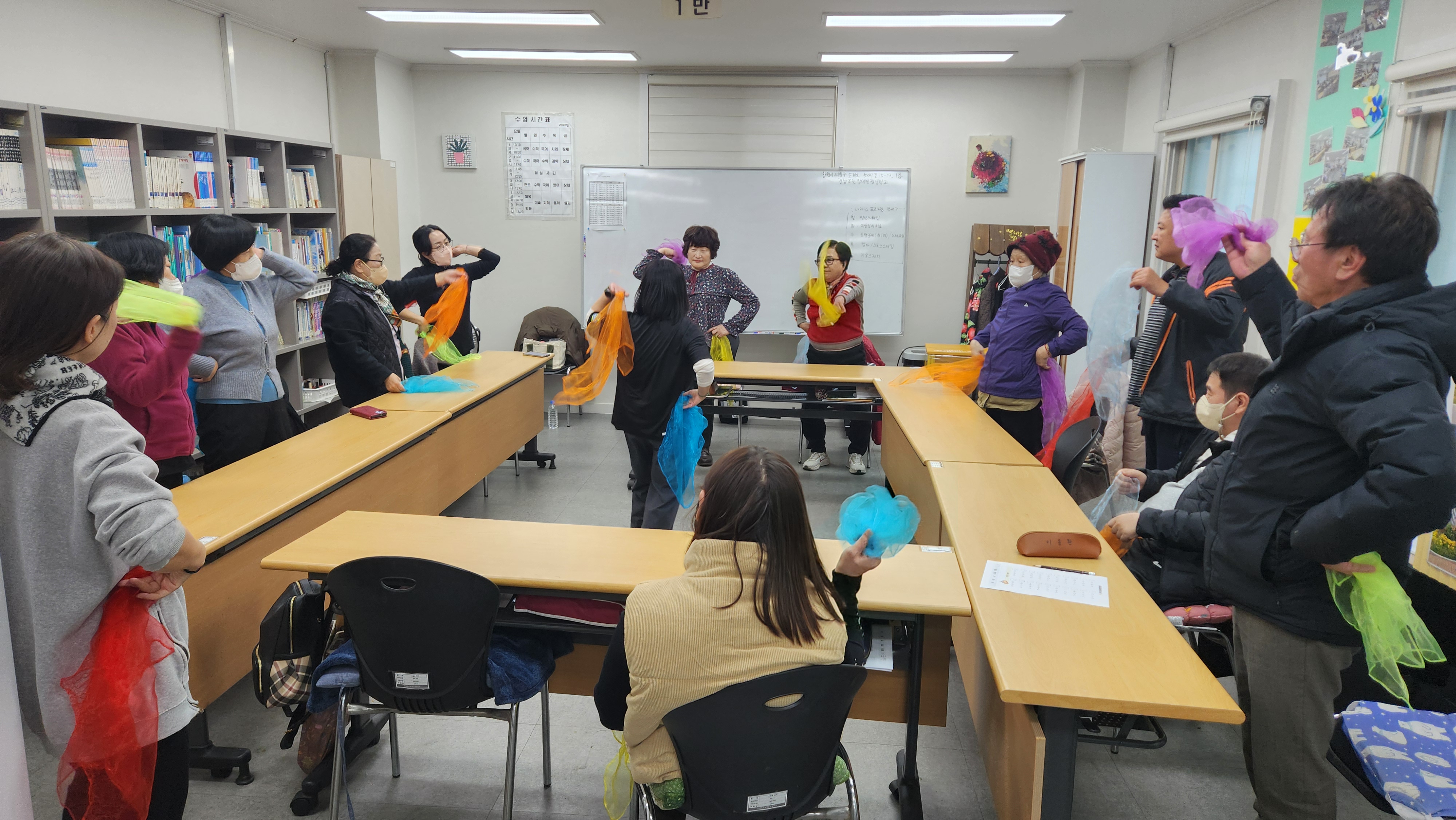 오늘 2반과 함께 한 프로그램은 컵타/스포츠스태킹으로 빙고 노래에 맞춰 준비운동을 하고 김장에 들어가는 재료로 손스팟을 해봅니다. 스카프로 다양하게 놀이하는 것이 너무나도 즐거운 조은학교 학생들입니다. 오늘도 흥겨웁게 스카프로 신나게 춤추고 놀면서 스트레스를 날려버립니다. 올레라는 노래로 마무리체조를 해보고 마무리해보았습니다.