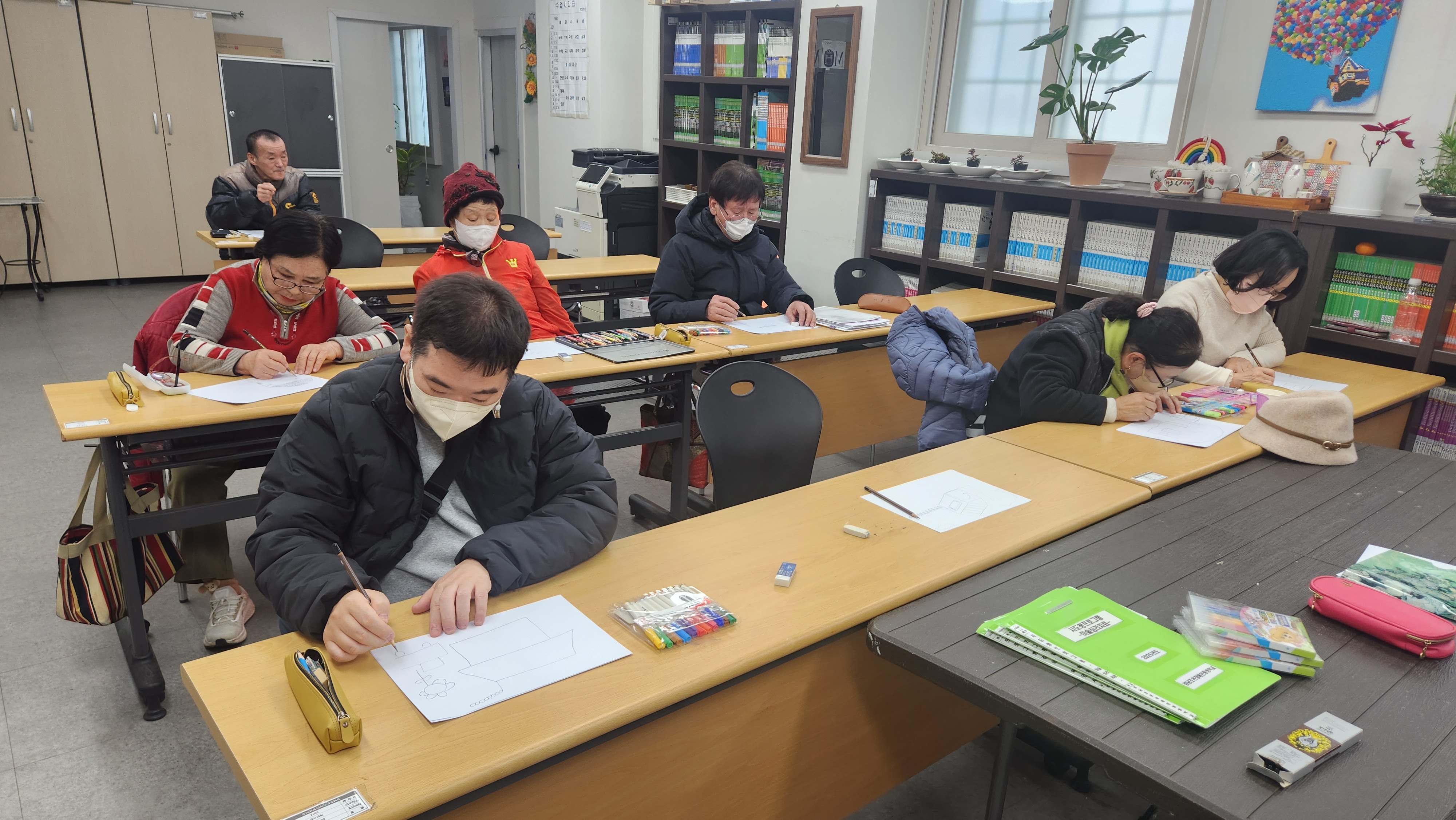 오늘 2반과 함께 한 프로그램은 미술심리치료로 HTP 검사를 통해 자기의 심리를 이해해보는 시간을 가져보았습니다. H : House, T : Tree, P : Person 을 뜻하는 것으로 각각의 그림을 그려봄으로써 나의 심리가 어떠한지 나와의 주변관계가 어떠한지에 대해 이야기 나누어보고 나를 좀더 이해해보는 시간을 가져보았습니다. 그림을 통해 나의 심리를 파악할수 있다는 것이 신기했고 학생들 모두 흥미진진한 태도로 수업에 임해보았습니다. 즐거운 미술심리치료 시간이었습니다.