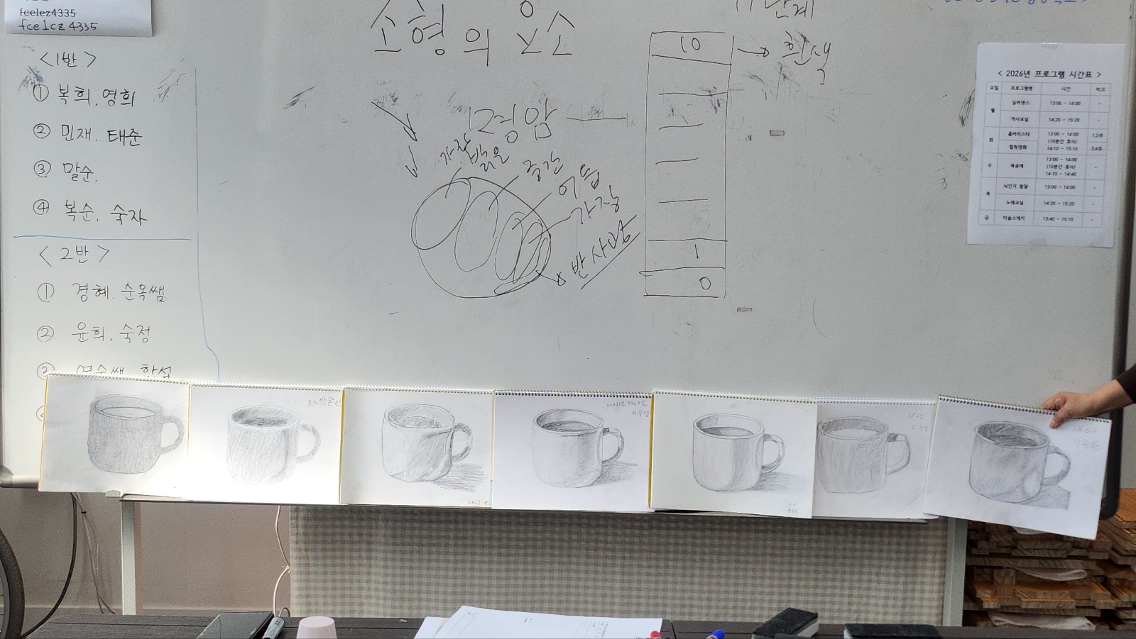 2026년 미술스케치 첫수업으로 이 시간에는 조형의 요소에 대해 배우며,