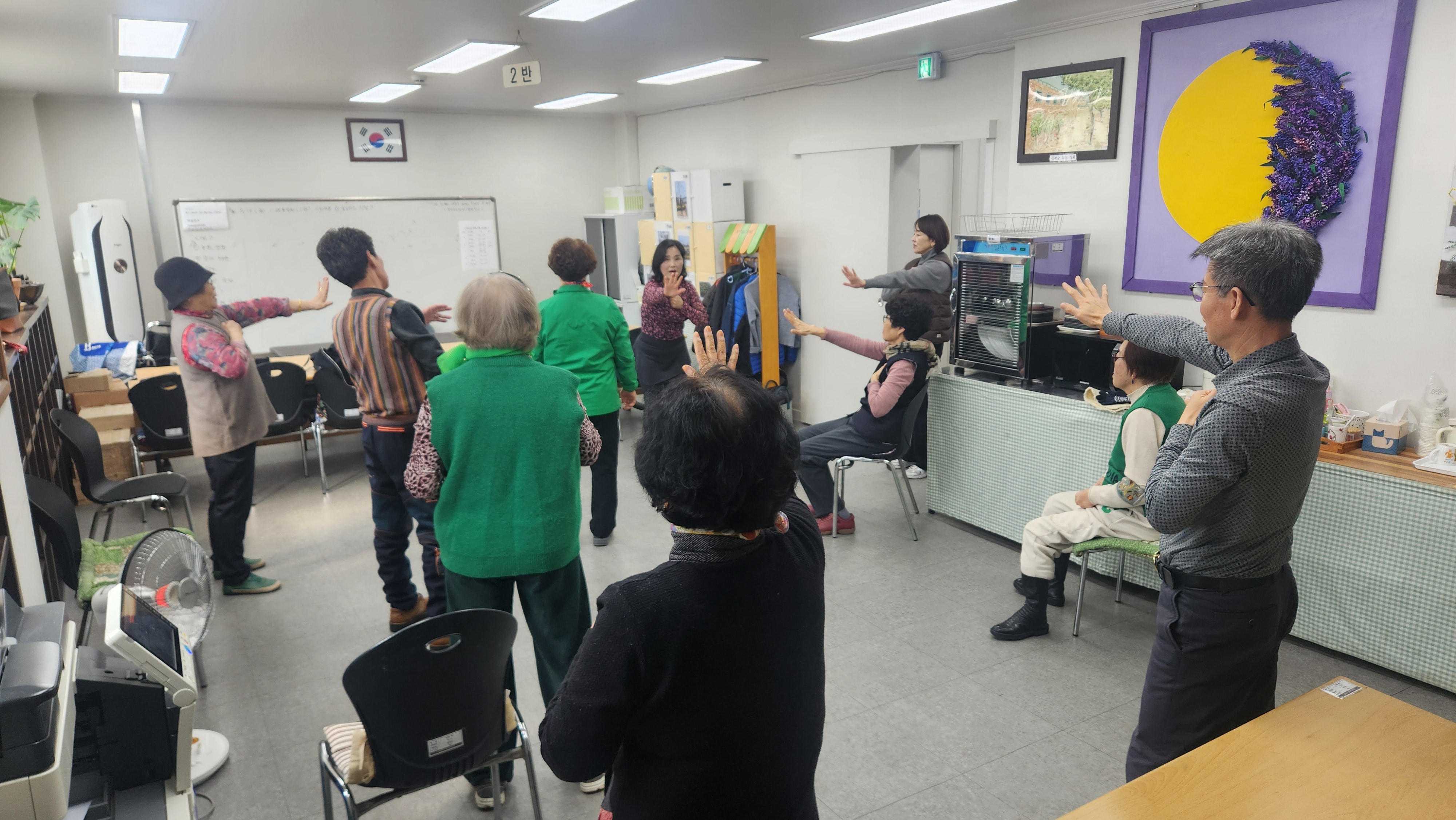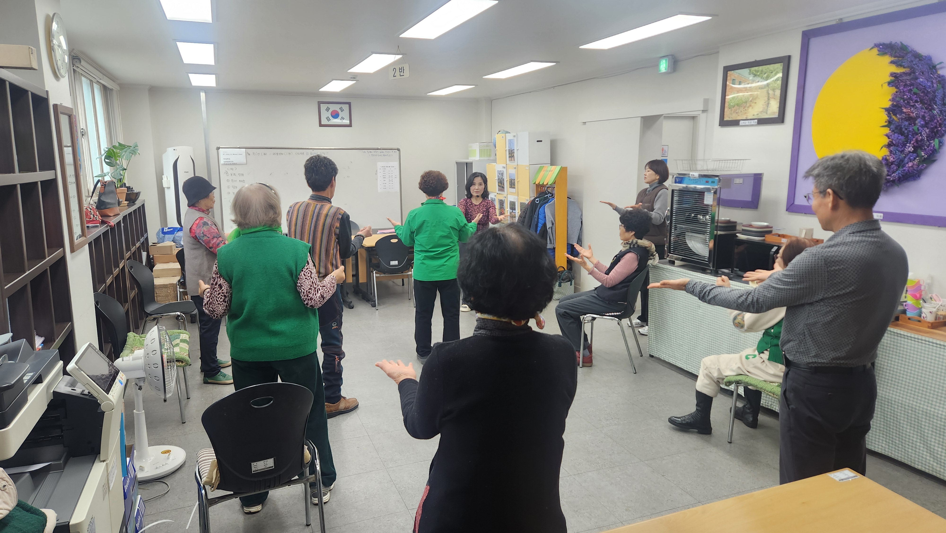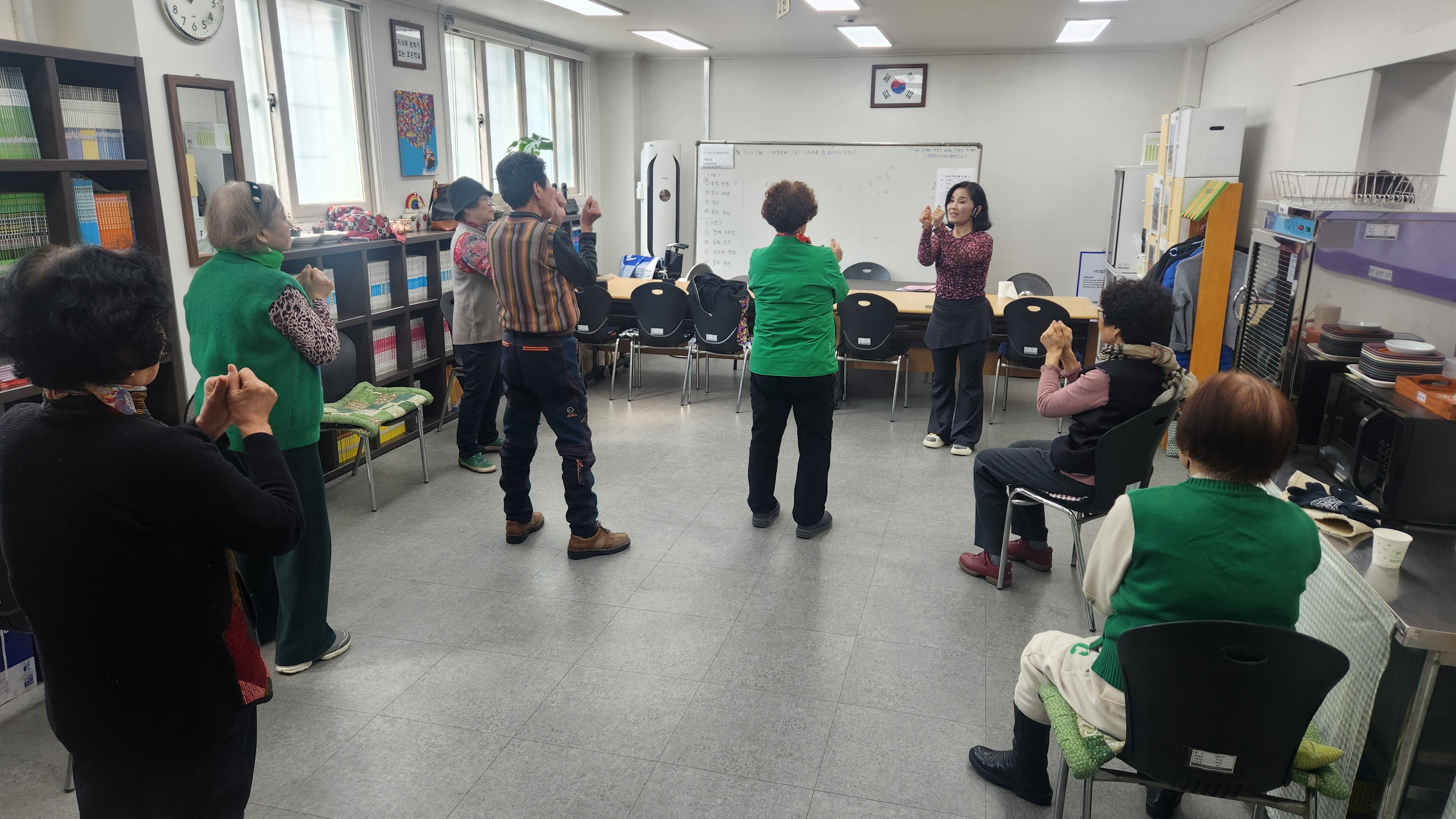 오늘 1반과 함께 한 프로그램은 실버댄스로 다양한 스트레칭과 음악에 맞춰 손유희 동작을 해보았습니다. "장미꽃한송이" 노래에 맞춰 손박수(건강박수)를 쳐보고 "시계바늘" 음악에 맞춰 준비운동을 해보았습니다. 다음으로 "못찾겠다 꾀꼬리" 노래에 맞춰 뭉친 어깨를 풀어주고 다양한 근력운동을 하며 실버댄스를 해보았습니다. 실버댄스는 26년도 새롭게 도입된 프로그램으로 흥겨운 음악에 맞춰 리듬을 타고 스트레칭을 하면서 손유희 동작도 함께 하는 프로그램이다보니 시간가는줄 모를만큼 학생들의 반응이 뜨거웠던 시간이었습니다. 간단한 운동이지만 모두 열심히 하면서 즐거운 시간을 보내도록 해봅시다. 모두들 수고하셨습니다.