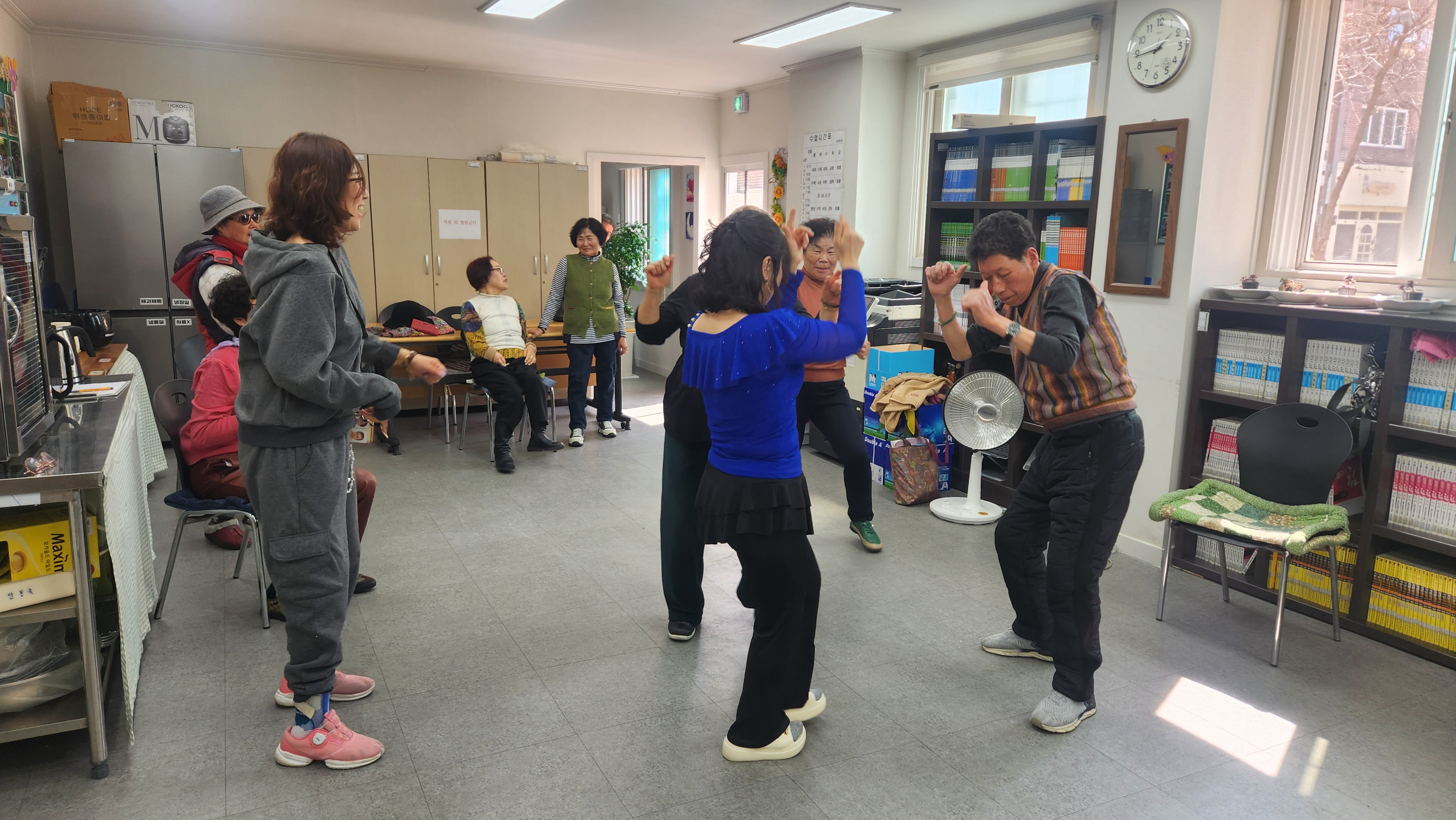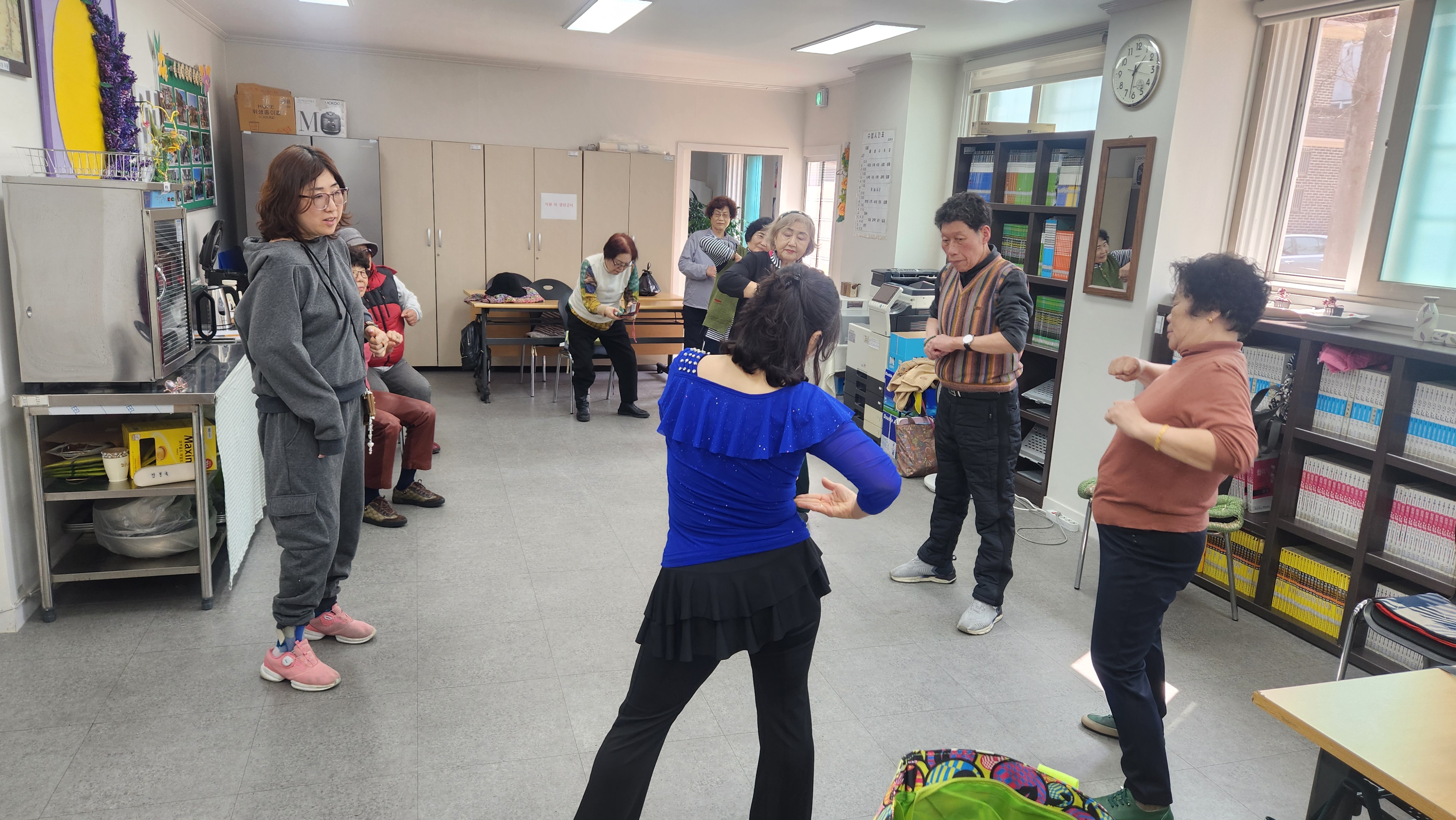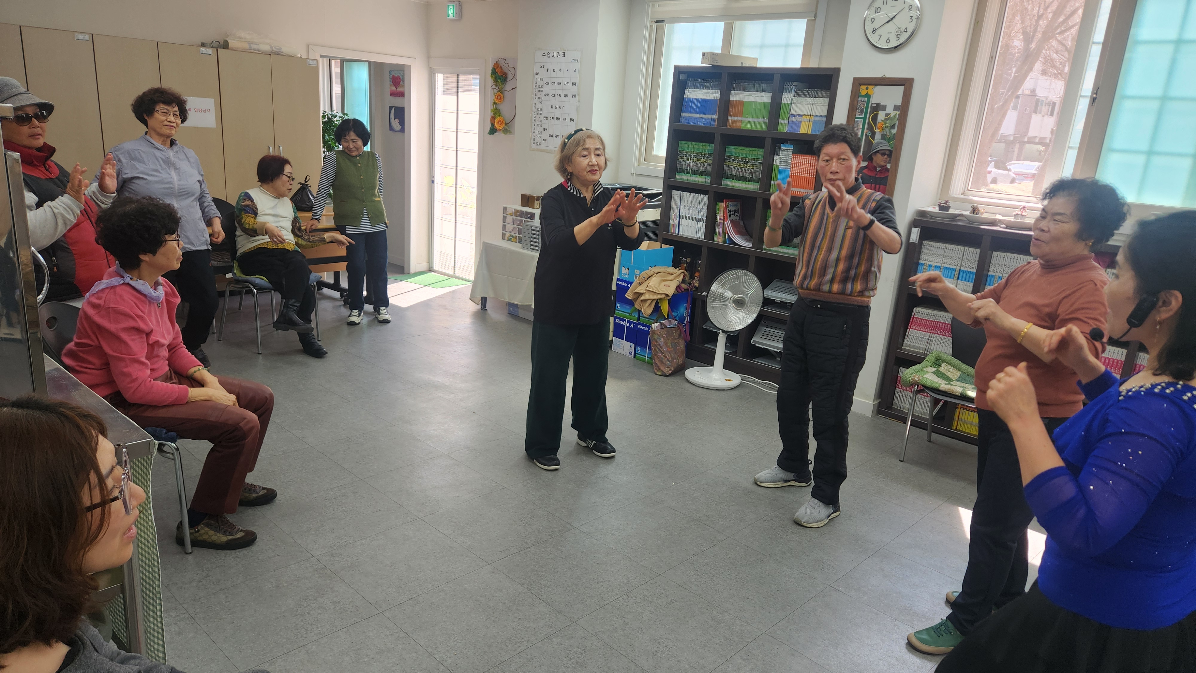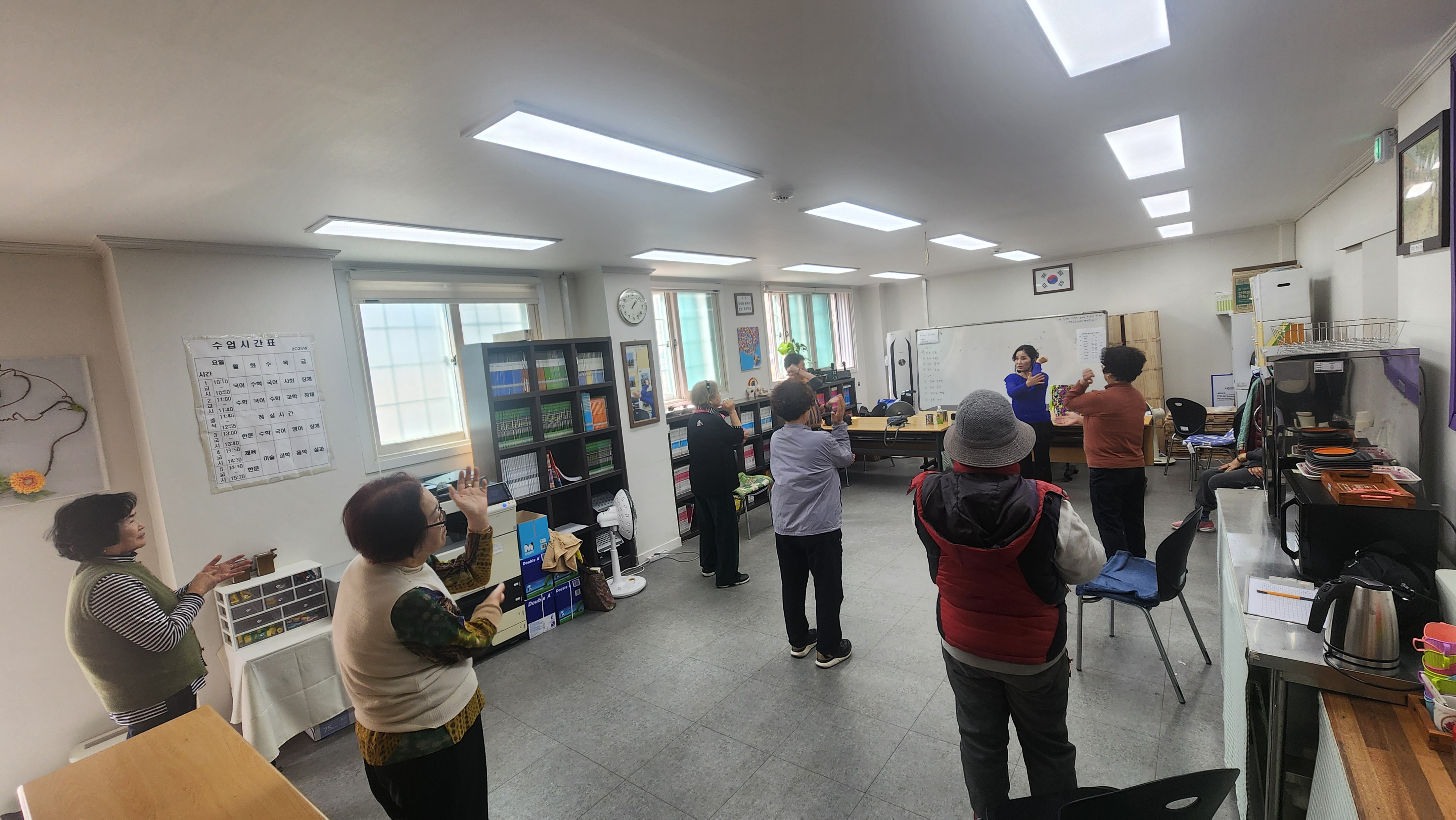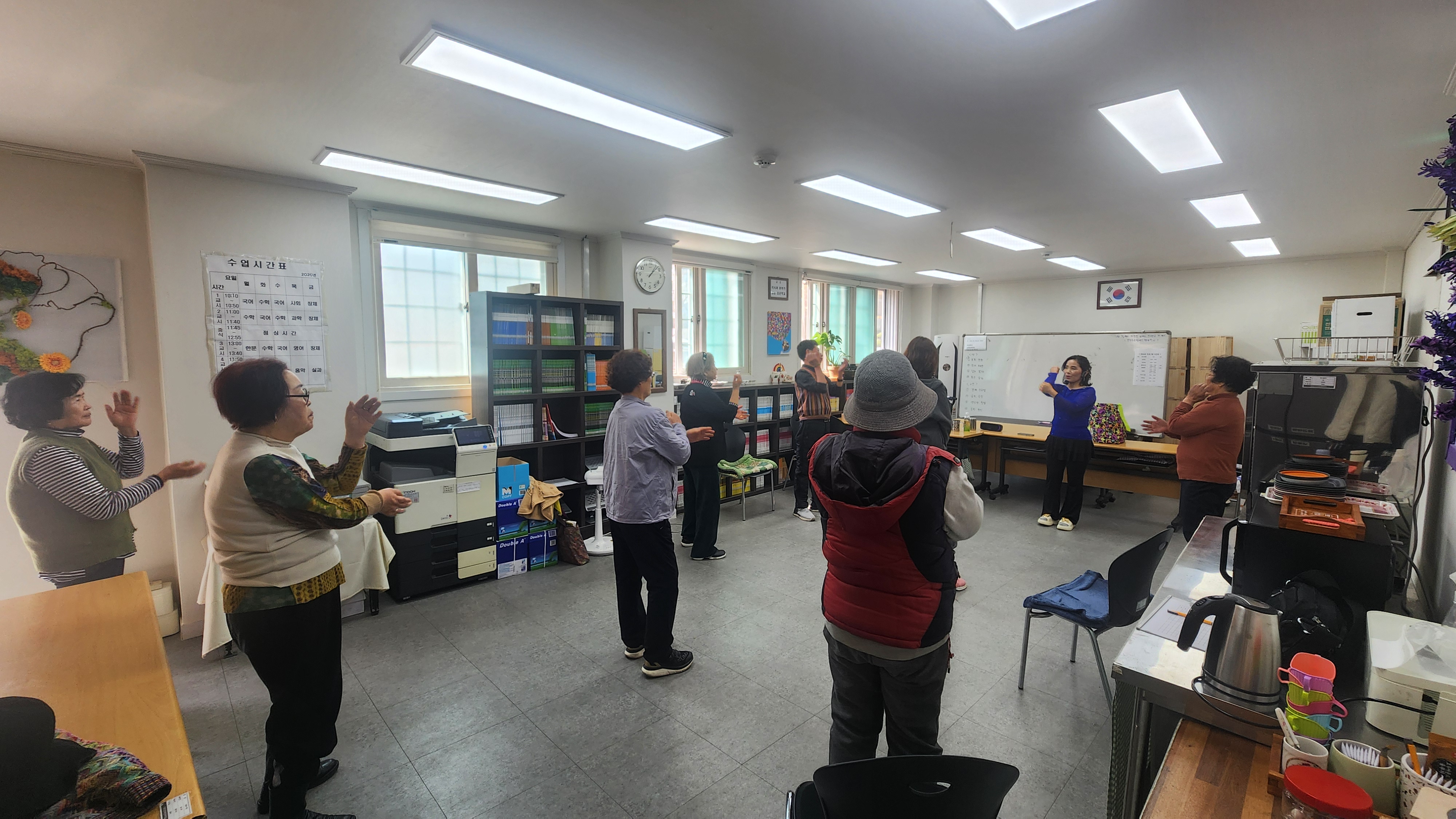 오늘 1반과 함께 한 프로그램은 실버댄스로 뇌건강체조와 어깨운동, 상체운동 및 손박수, 주먹박수를 주제로 진행해보았습니다. 먼저 손과 눈의 협응력을 키워 치매예방에 도움이 되는 동작을 함께 해보았습니다. 또 어깨 관절을 부드럽게 하고 승모근 근육을 풀어 오십견을 예방에 도움이 되는 운동을 해봅니다. 흥겨운 우리가락 음악에 맞춰 심적 우울감을 해소해보고 신나게 몸을 흔들어보면서 즐거운 시간을 보내보았습니다. 흥이 많은 학생을 위해 뽕짝 노래를 틀어드렸더니 얼마나 열심히 춤을 추시던지 실버댄스 시간에 큰 웃음이 함께 하였습니다. 즐거운 시간이었습니다.