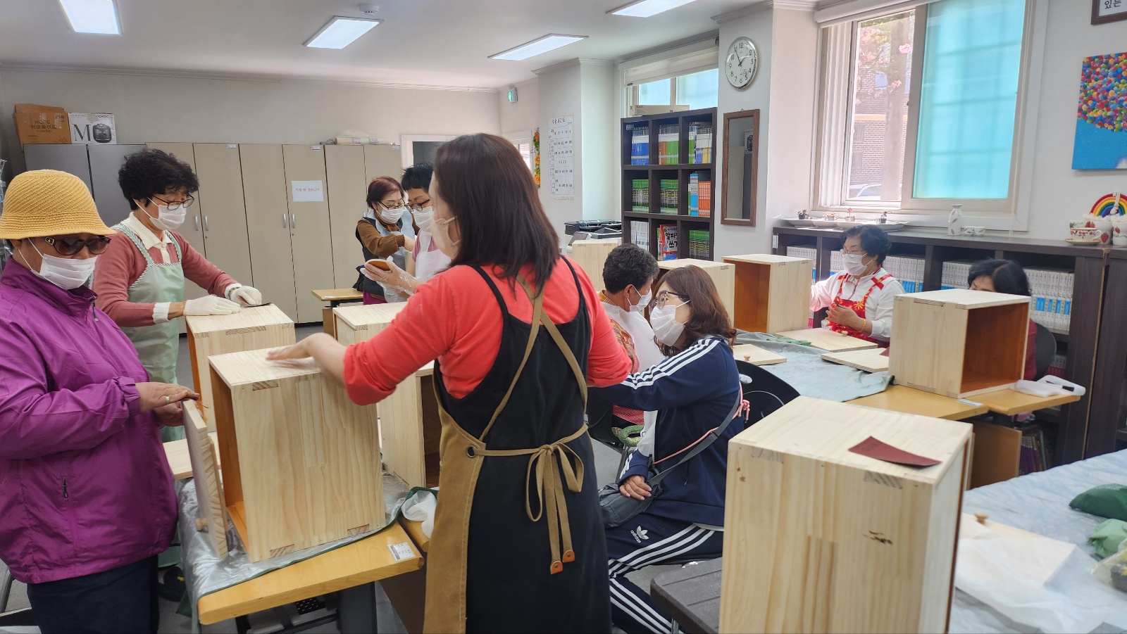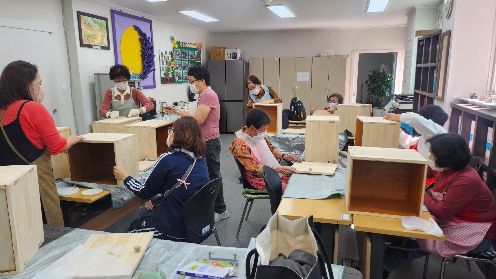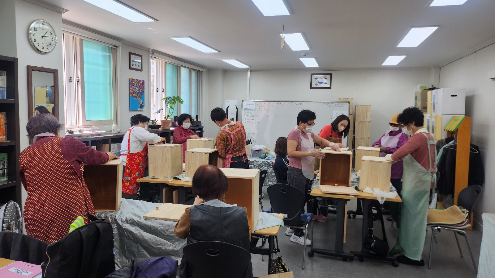원목박스 만들기 3차수업으로 형태를 만들어 놓은 원목박스를 전체적으로